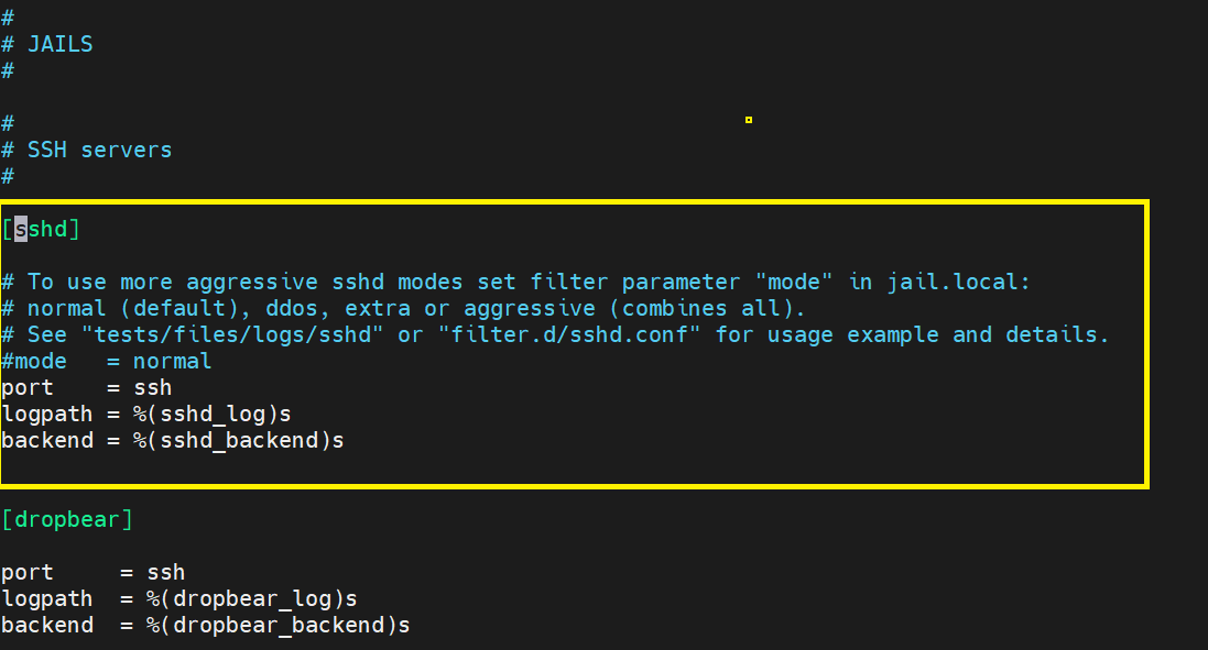 # To use more aggressive sshd modes set filter parameter "mode" in jail.local: