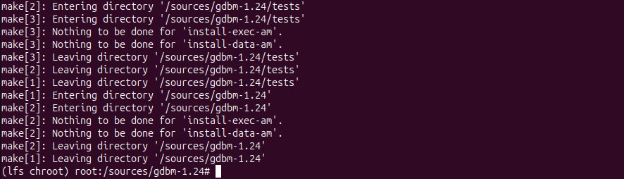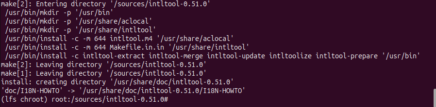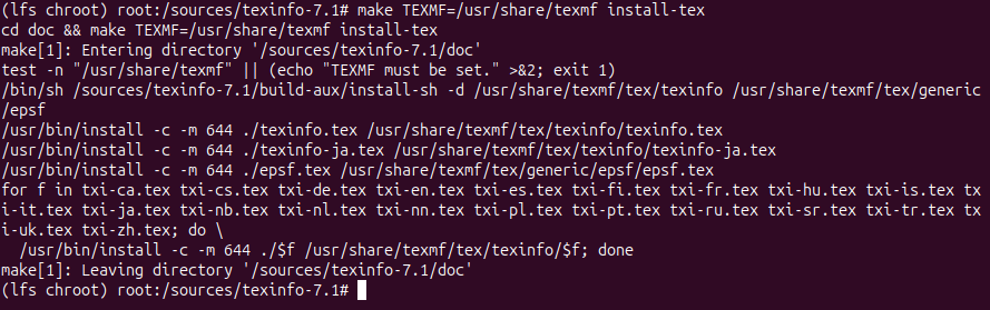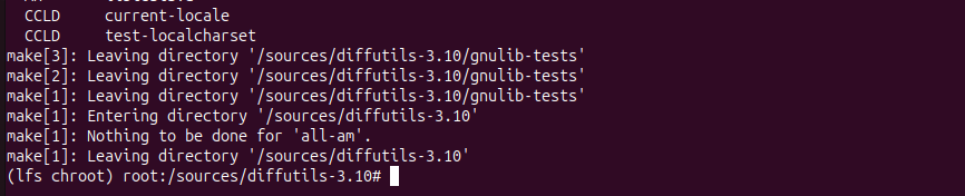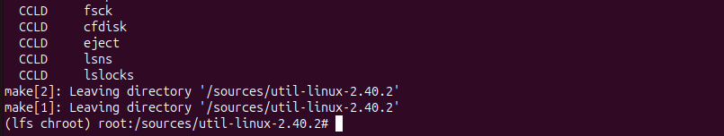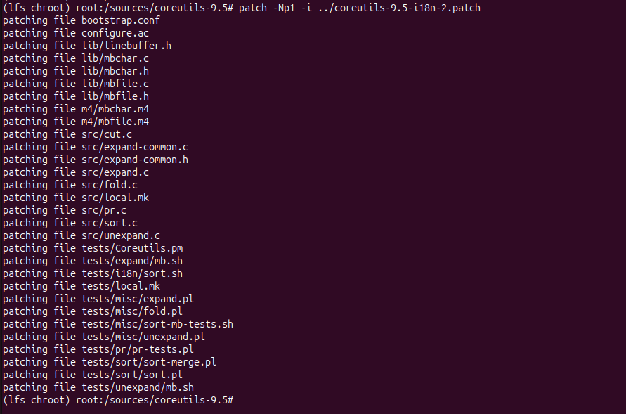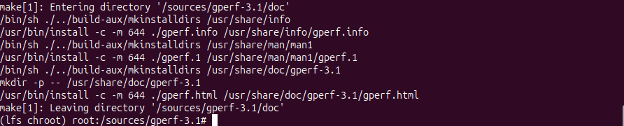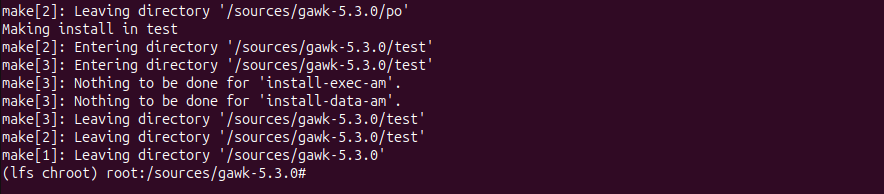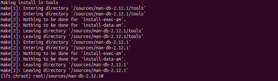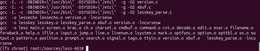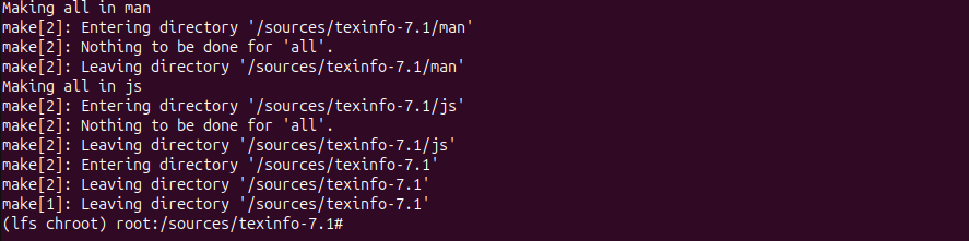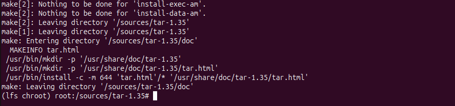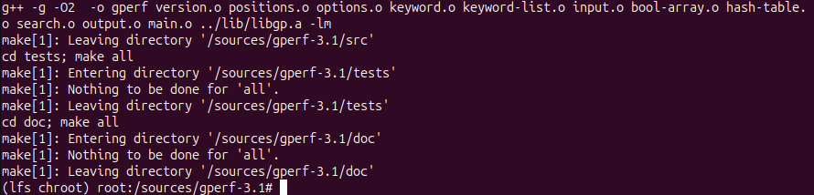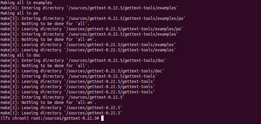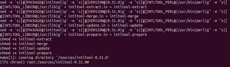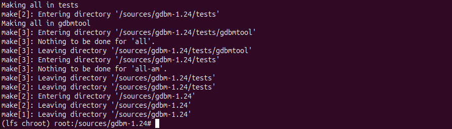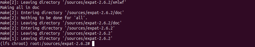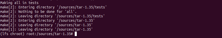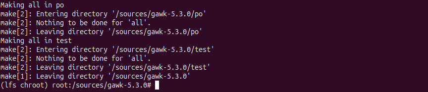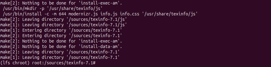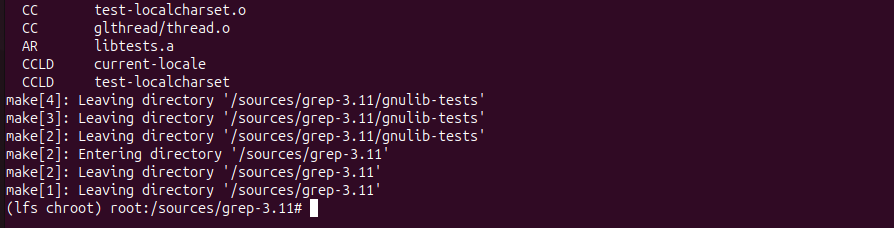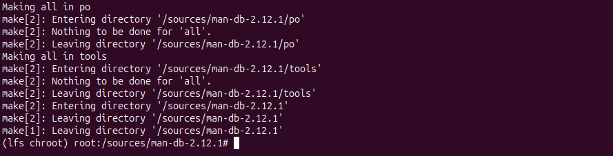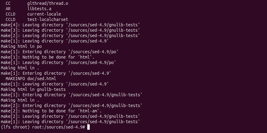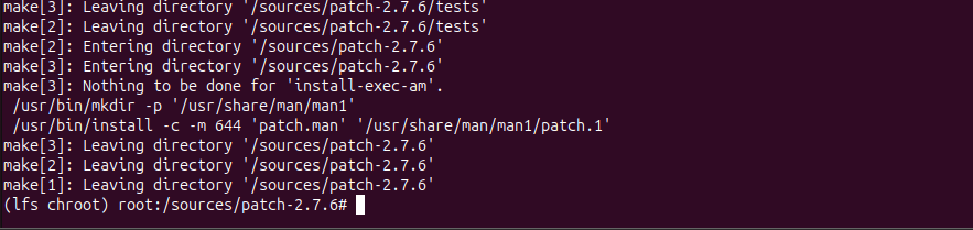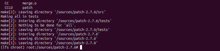 Ahora vuelve el compilar paquetes, pero ahora no tenemos la variable LFS puesto que ya estamos dentro del chroot! Por lo tanto /sources será la anterior /mnt/lfs/sources.