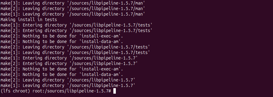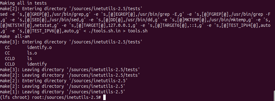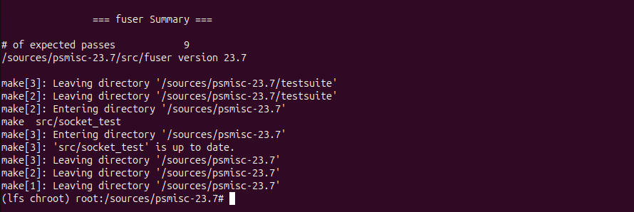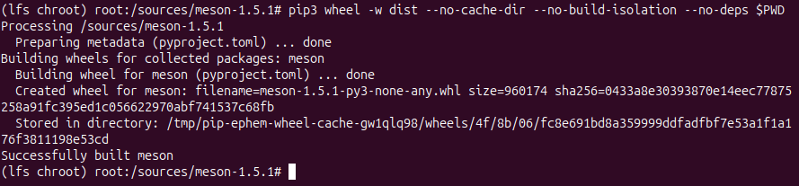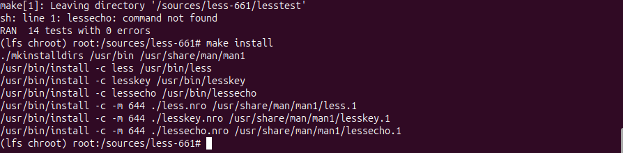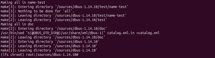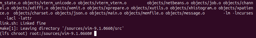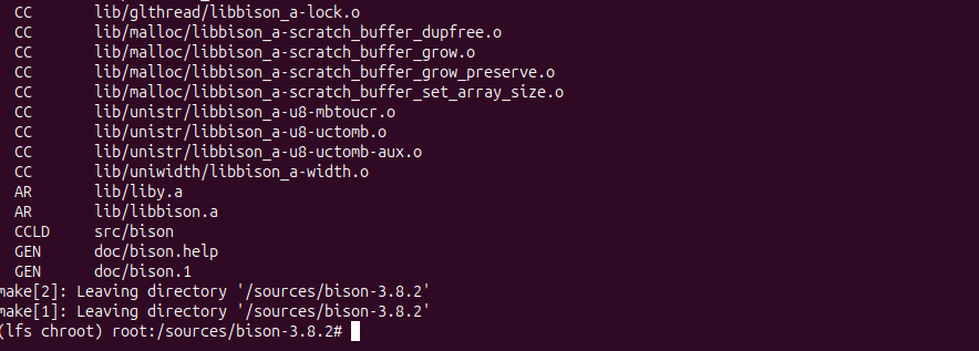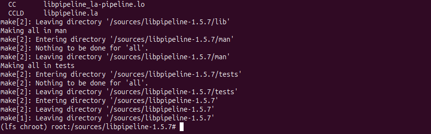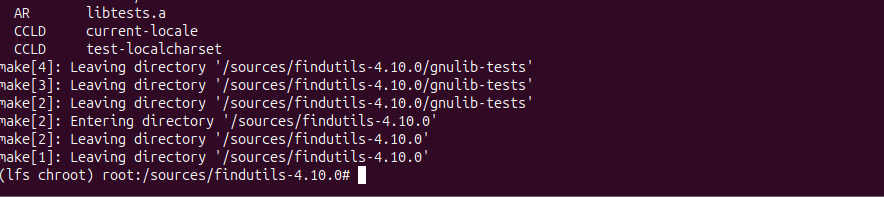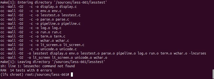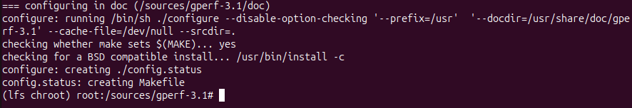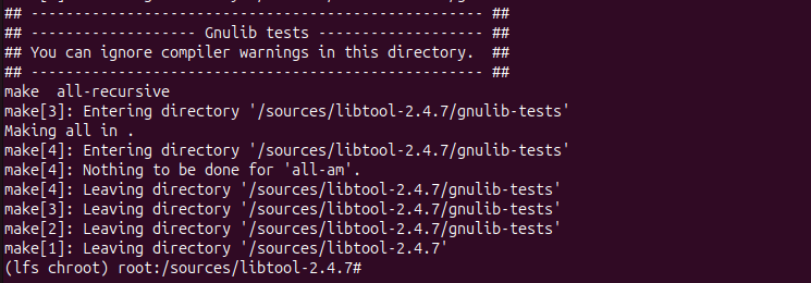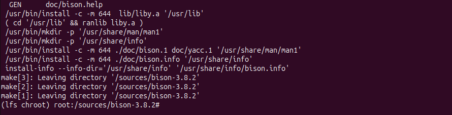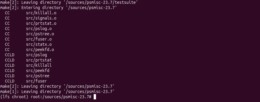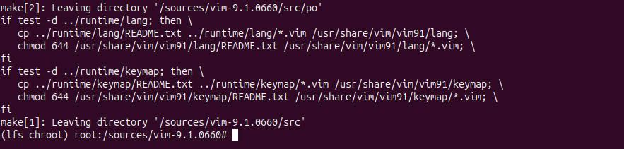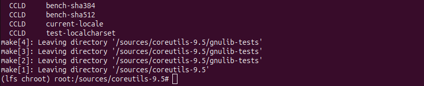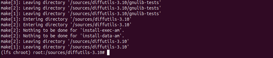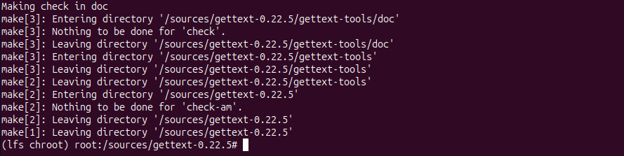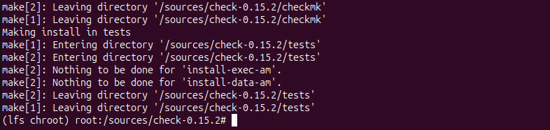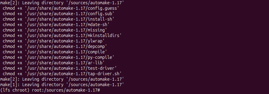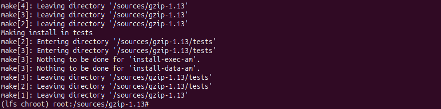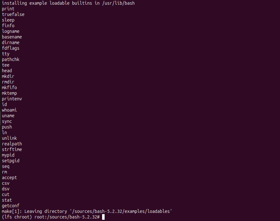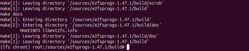 Ahora vuelve el compilar paquetes, pero ahora no tenemos la variable LFS puesto que ya estamos dentro del chroot! Por lo tanto /sources será la anterior /mnt/lfs/sources.