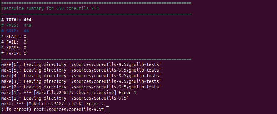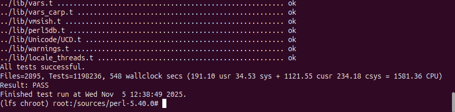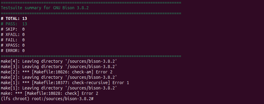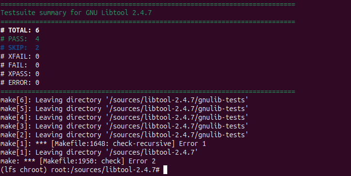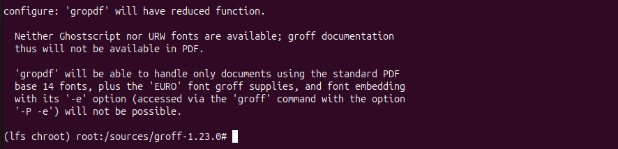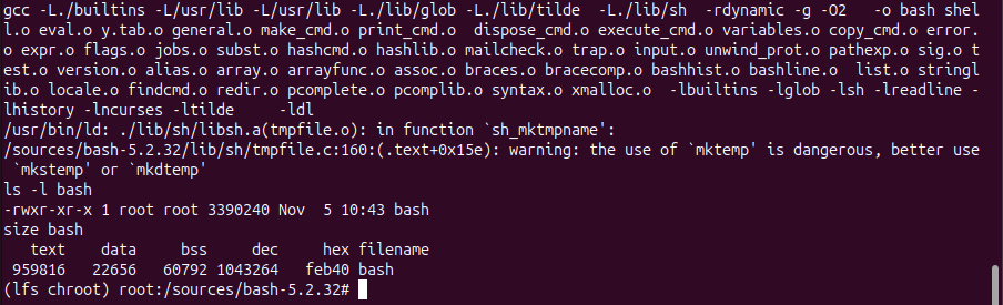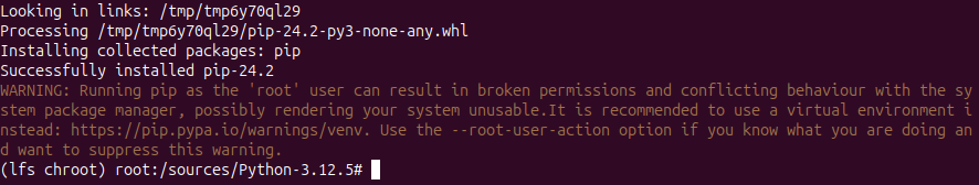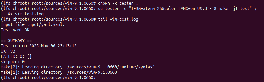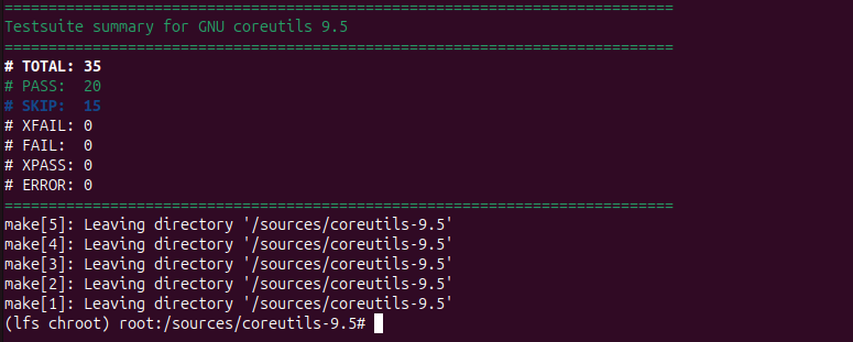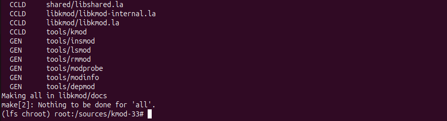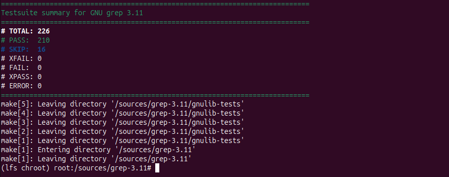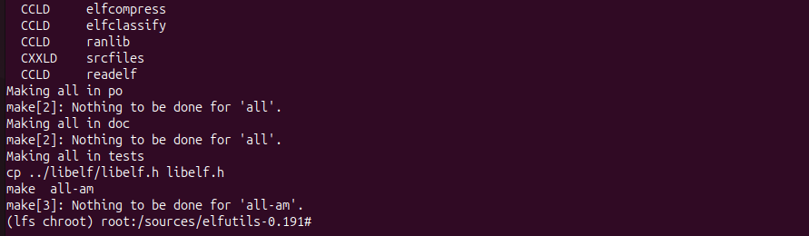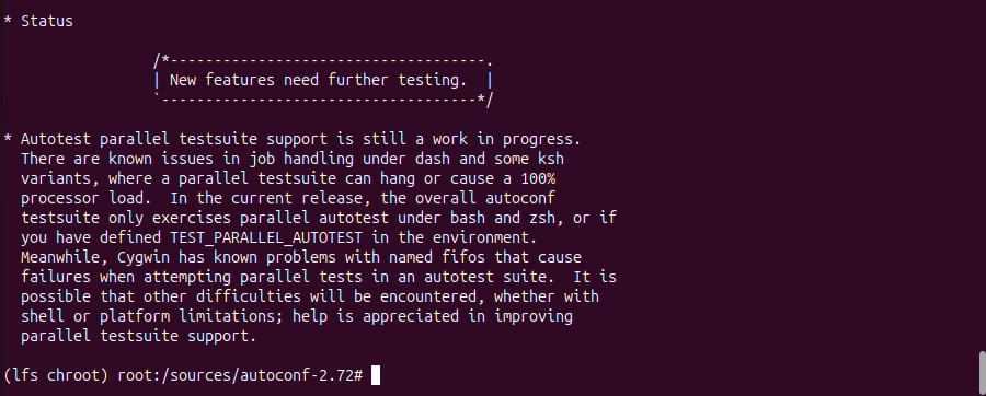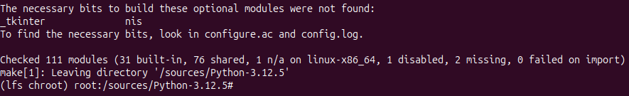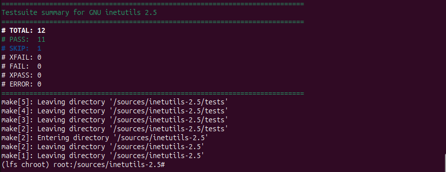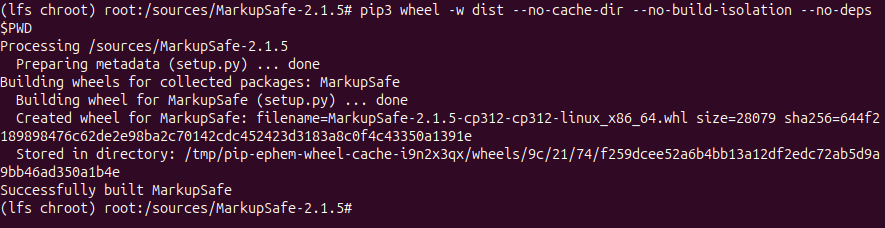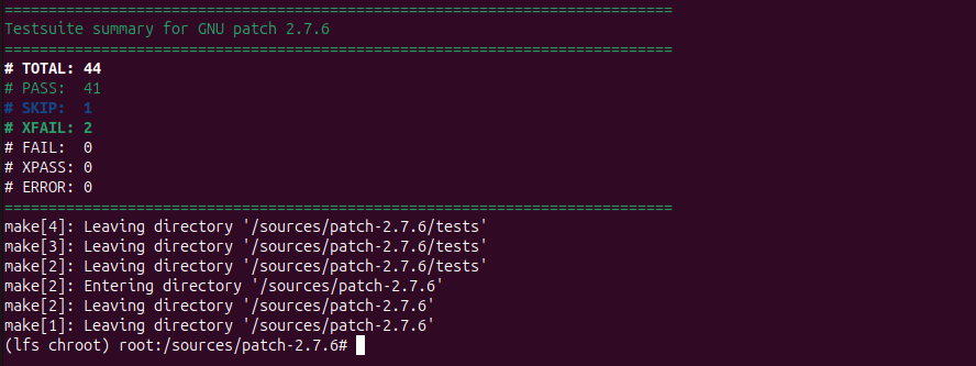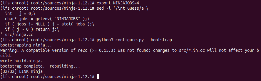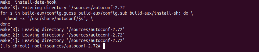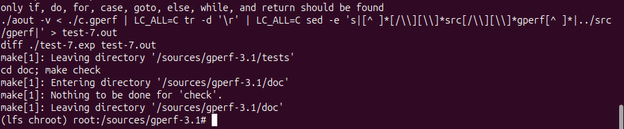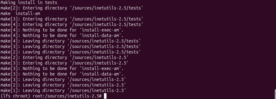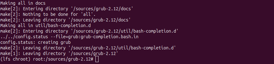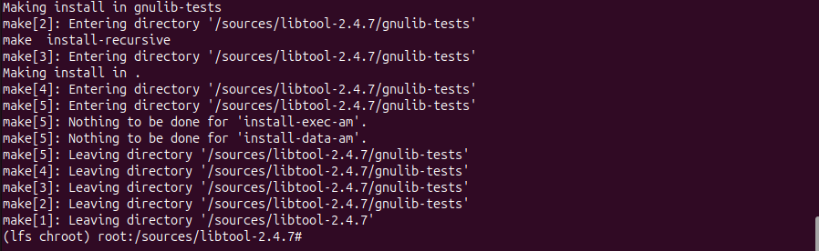 Ahora vuelve el compilar paquetes, pero ahora no tenemos la variable LFS puesto que ya estamos dentro del chroot! Por lo tanto /sources será la anterior /mnt/lfs/sources.