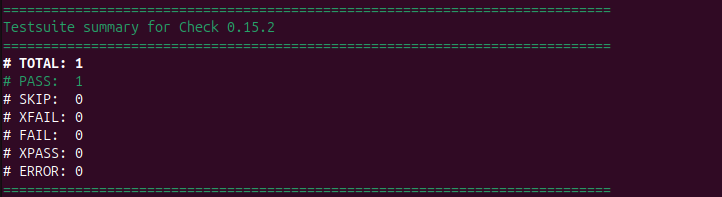 Output make check. Los otros test de 1 deberan pasar correctamente.