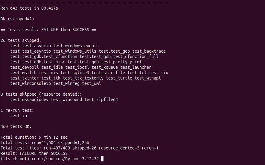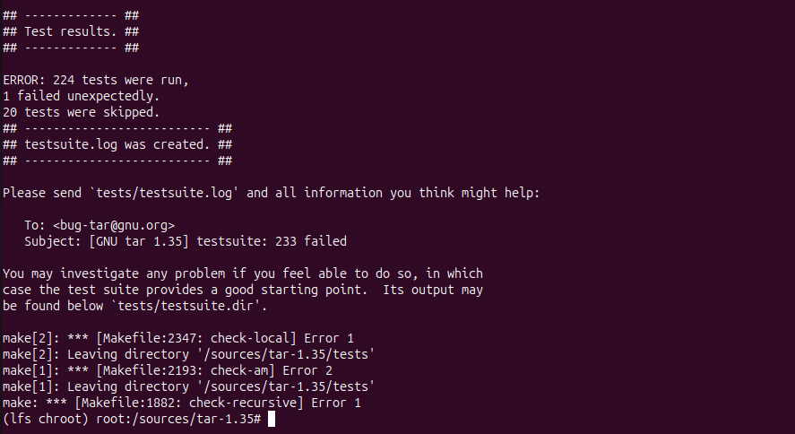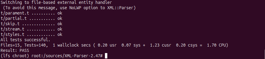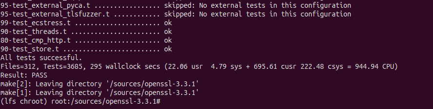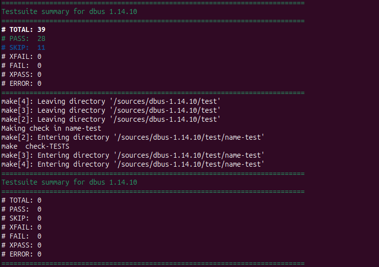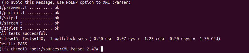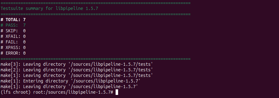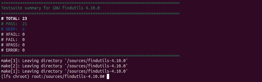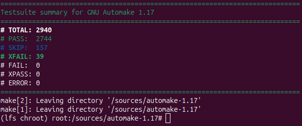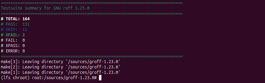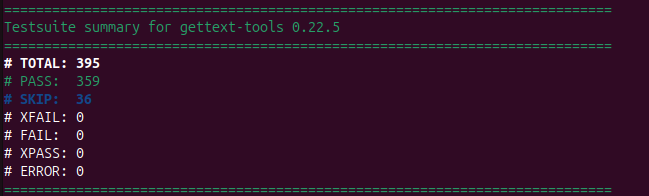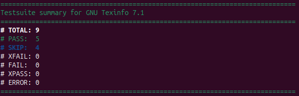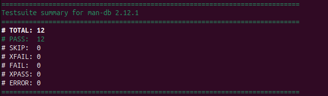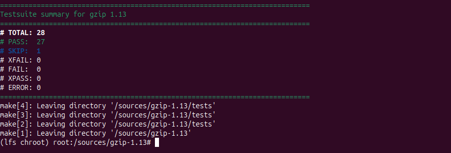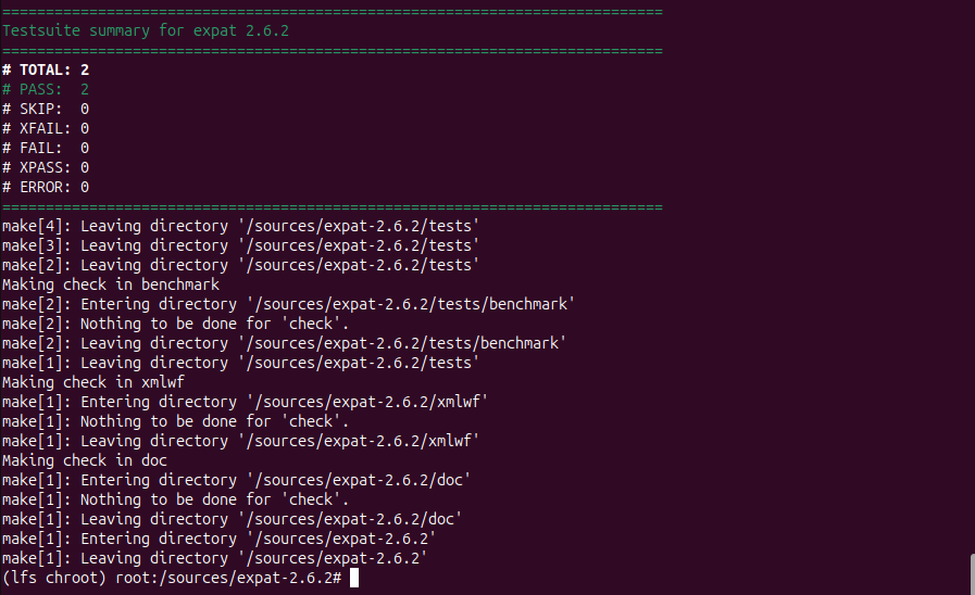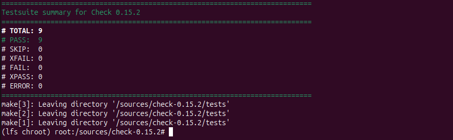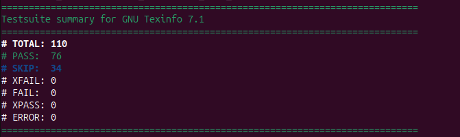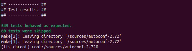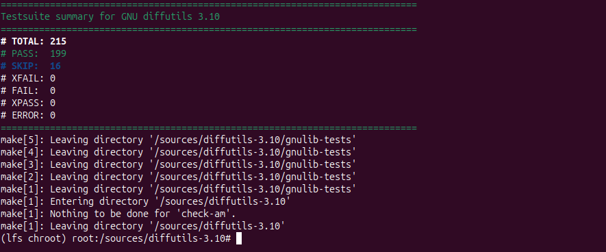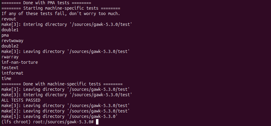 En la documentación se indica que hay 199 test, al ejecutar el comando awk se puede ver que 199 han pasado correctamente, por lo que se puede continuar con el make install