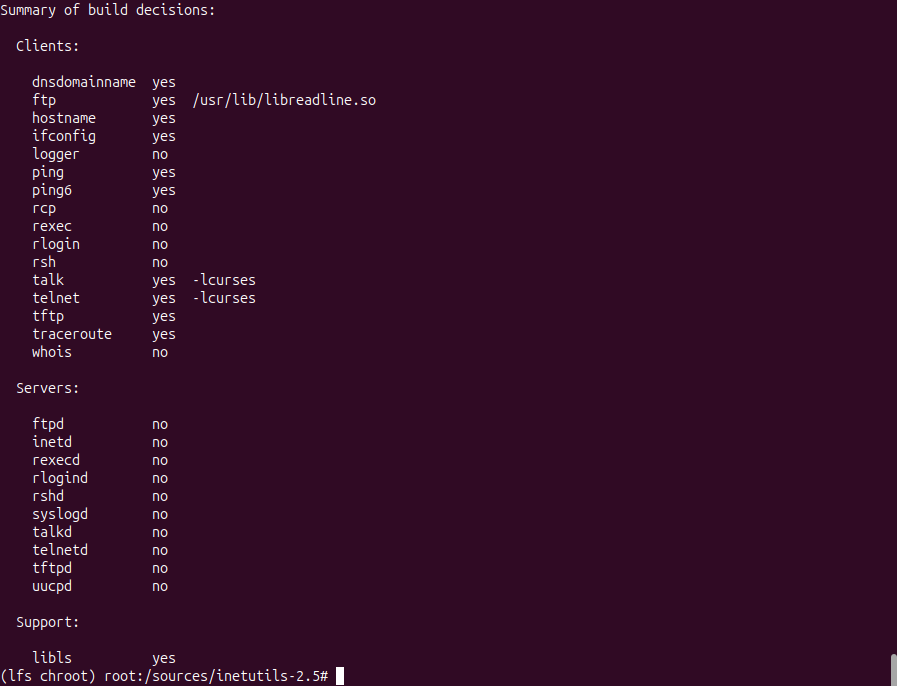 Esto no intenta ser para nada una guía, para ello ya está el libro de LFS, simplemente un post con las imágenes de cada output